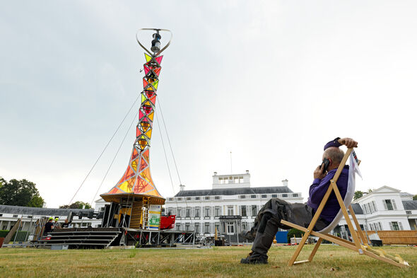 The tower was present al all kinds of festivals, and even much more unique locations during the COVID pandemic: “A military encampment, the Zandvoort circuit, and even Soestdijk Palace.” The tower has now been expanded with a stage in the same style, the GEM Stage.