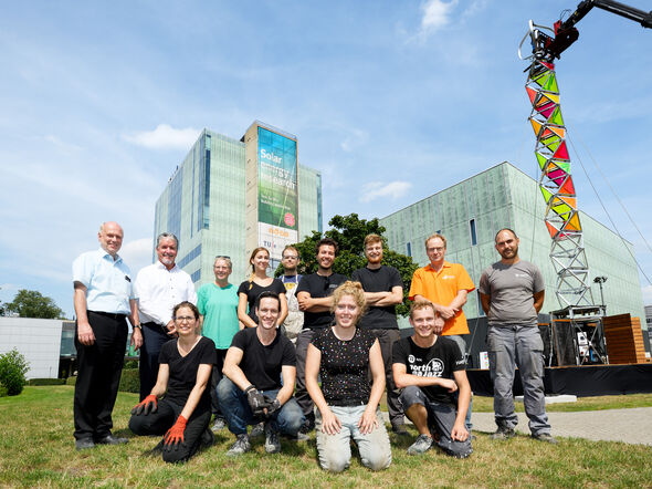 Together with PDEng candidates Floor van Schie, Patrick Lenaers, and Marius Lazauskas, he developed the GEM Tower: a tower that is easy to move and that generates sustainable energy, using a wind turbine, among other things. Its creative design and bright colors also make the tower an eyecatcher on the festival grounds.