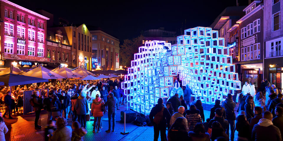 Light art festival GLOW can be seen up to and including Saturday November 16th in Eindhoven city center. Hypar is located in the middle of the market square. The pedestrian route is open from 18.30 hrs until 23.00 hrs.