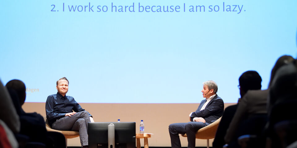 It’s not about deciding whether to study or not, he says, and deciding what program to follow. It’s about finding what’s right for you and how much you enjoy it. “I work with a team of writers on my tv show ‘Zondag met Lubach,’ and that group has so much fun together. It’s a pressure cooker of creativity. Once we’re finished writing the show, I’m dead tired, but extremely happy.” Or, as he puts it a little later: “Even if someone would give me ten million euros right now, I would continue to do what I’m doing now. That’s what you should strive for, I believe.”