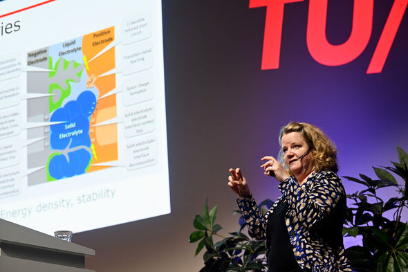 The keynote by Moniek Tromp, professor of Materials Chemistry at the University of Groningen, revolves around a crucial component of the energy transition: batteries. She explains that rechargeable batteries are essential, not only for sustainable mobility – e.g., electric vehicles – but also for storing solar and wind energy when there’s a surplus.