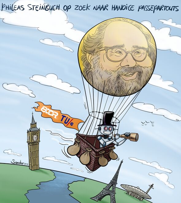 Cartoonist, karikaturist en illustrator Sandor Paulus verbeeldt in iedere Cursor een actuele kwestie. Ditmaal: Hoogleraar Maarten Steinbuch wil in 2015 deelnemen aan 80DR, een internationale racewedstrijd waarvoor teams in tachtig dagen rond de wereld proberen te reizen zonder gebruik te maken van fossiele brandstoffen en verbrandingsmotoren.