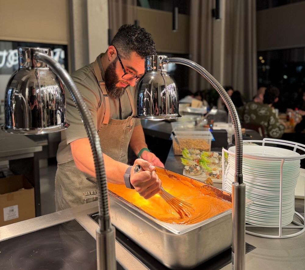 Dat lukt aan alle tafels prima. Sommigen kennen elkaar, maar de meesten niet. Terwijl chef Mounir Toub in de satésaus roert en de nasi wordt opgediend, is iedereen aan het kletsen. Over de studie, het voorgerecht, de woonplek of de liefde.