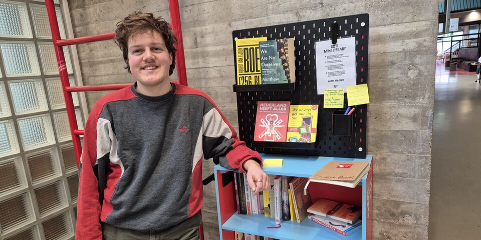 “Een van de andere studentassistenten van SG is Lente, haar zie je vaak bij de informatieve lunchlezingen. Ik ben bij de culturele avondprogramma’s. Ik verzorg licht en geluid, zet banners van SG neer, plak briefjes op de deuren met de uiterlijke toegangstijd, zorg voor voldoende stoelen, enzovoort. Ook draai ik soms films in de Zwarte Doos.”