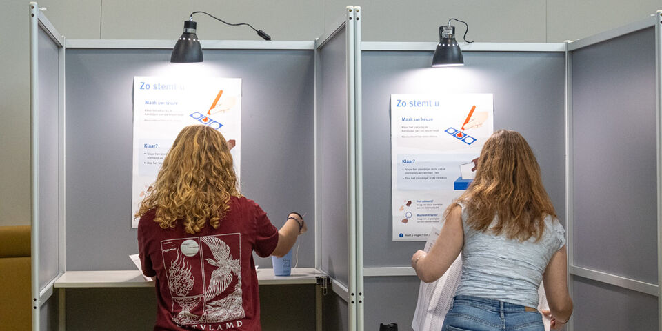 Voor sommige studenten is het deze woensdag 18 maart de eerste maal dat zij mogen stemmen en voor twee vrienden, beiden Mechanical Engineering-student, is dat nog even wennen. Ze wonen sinds september in Nederland. “Do I need a pen?”, vraagt de Roemeen. “Is it only today?”, wil de student uit Servië weten. Hij heeft zijn stempas nog thuis liggen en twijfelt of hij later vandaag nog een poging gaat doen om zijn stem uit te brengen. “De ervaring in mijn thuisland maakt dat ik niet veel vertrouwen in politici heb.”