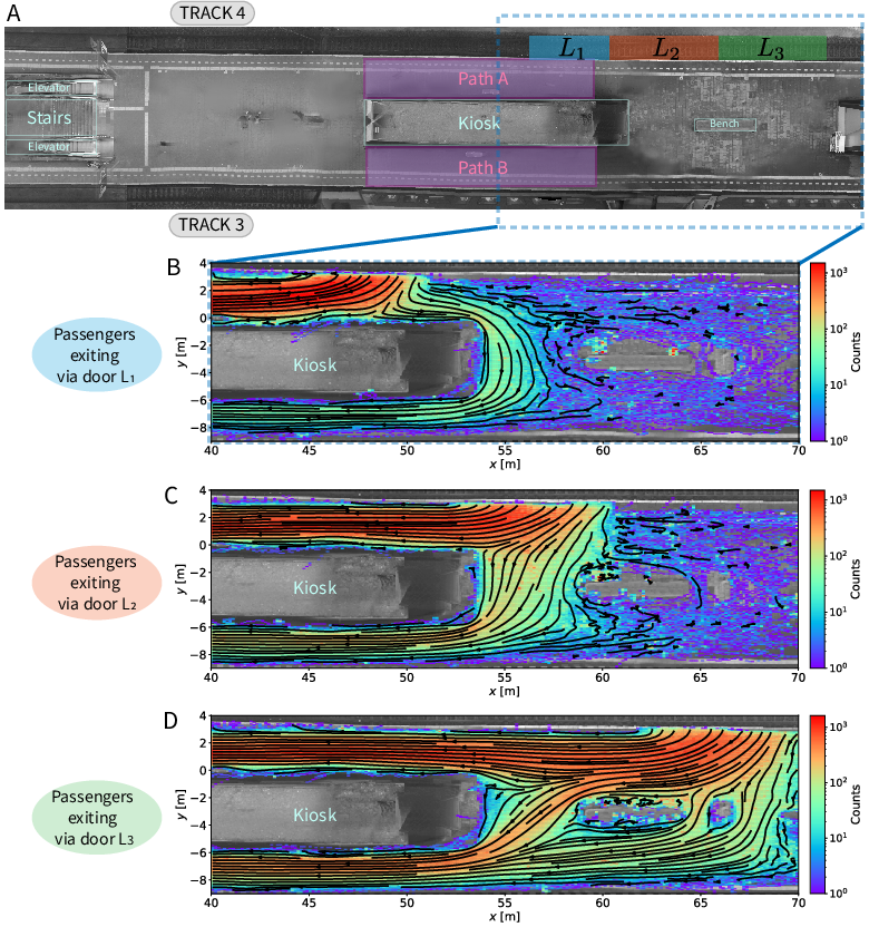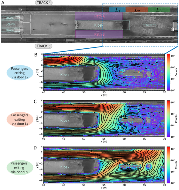 Wang examined three train door zones near a kiosk on the platform. “Even when someone chose the longer walking route past the kiosk, strangers followed that person.”