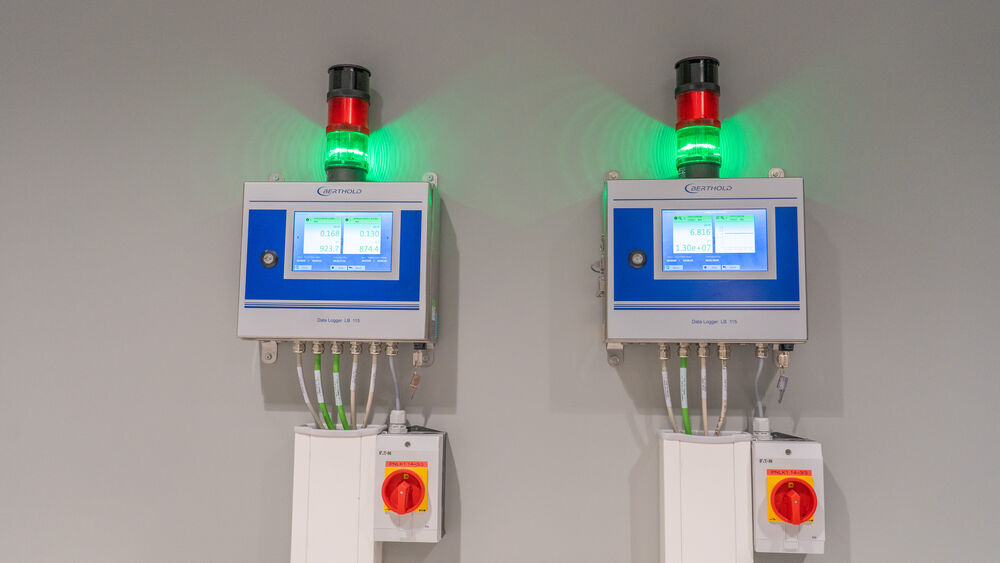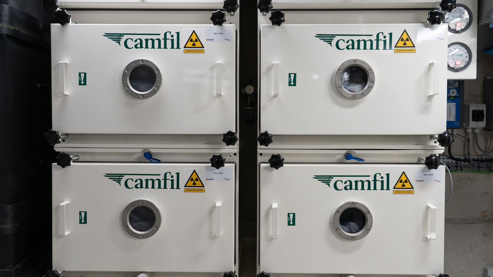The ventilation system is, in principle, directly connected to the outside air. However, because the ducts contain several sharp bends, the radiation in the air loses energy with each ‘collision’ against the wall. The last radioactive particles are captured in a filter system with activated carbon filters, which also functions as an automatic emergency system: if radiation levels become too high, the ventilation shuts off immediately. This prevents contaminated air from escaping outside.
