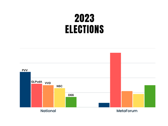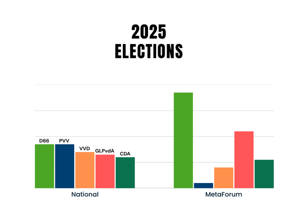 Just as in the national elections, D66 came out on top at the polling station in MetaForum. A total of 2,345 valid votes were cast at the university, with the vast majority (37 percent) going to D66. Unlike the national outcome, GroenLinks–PvdA and CDA finished second and third here.