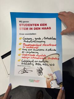 At the end of the afternoon, GroenLinks-PvdA writes down five proposals they drafted together with the students. At the top: sufficient, good, and affordable student housing. Second: integrating sustainability structurally into education. Third: ensuring sustainable and ethical AI regulation. Fourth: researching the mental well-being of international students. And finally: equality and fair treatment across MBO, HBO, and WO. GroenLinks-PvdA intends to pursue these proposals in The Hague.