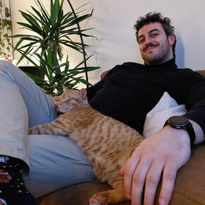 Qurfa was once rescued from the streets of Bahrain and adopted in 2024 by Daniël Huisman, who works at LIS. “Fun fact: Qurfa is Arabic and it means cinnamon. I decided to keep that name instead of renaming him after adoption,” Huisman explains. Qurfa didn’t need much time to adjust to his new home. “From the first day he loved cuddling and being close to me. He’s my gentle ginger giant.”