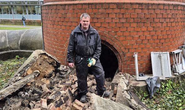“The yellowish edge is sulfur. When moisture gets to it, a reaction occurs that makes the mortar crumble. The same thing happens in the wall that will remain. We want to wash away that sulfur. That’s why we’ll spray the inside with a high-pressure cleaner, then rinse it again a day later. After that, everything needs to dry.”