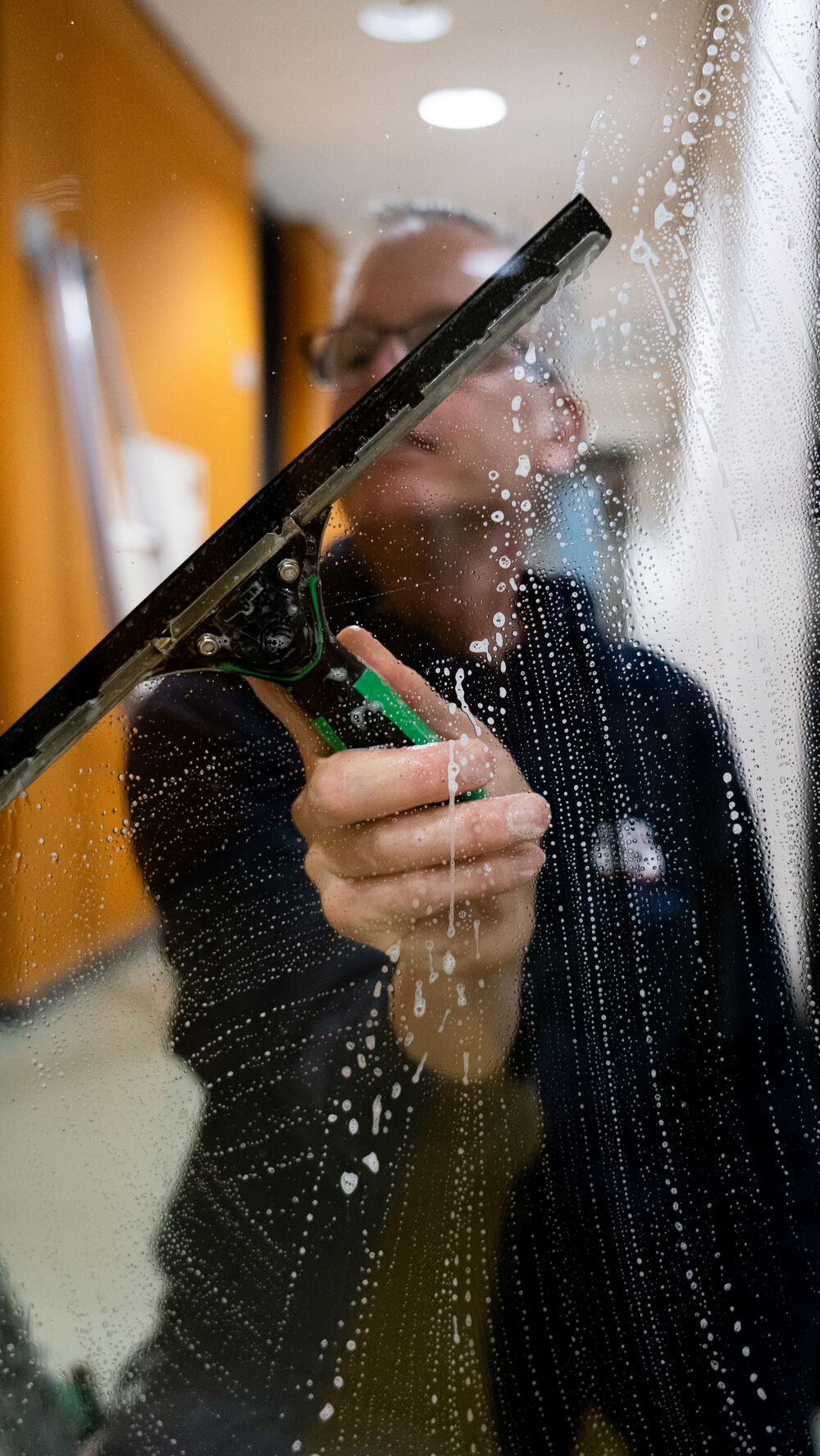 “The trickiest windows are in Flux. On the inside of the facade glass, there’s first a layer of blinds and then another layer of glass. It’s hard to explain, but I have to do some pretty acrobatic moves and use poles to reach everything.”
