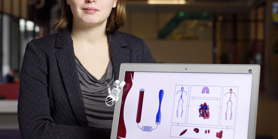 Keijsers has succeeded in modeling the blood pressure control in the legs. When her model is integrated with a model of the whole circulation, the result can be used in the future for the selection of a treatment for frequent complaints such as fainting, but also for varicose veins – which are formed by hypertension in the lower legs. “Nowadays varicose veins are filled up or removed. Before long you may be able to use the model to decide to place a new valve in a vein at a strategic site. You will need to tailor such a model to each person individually, for unlike arteries, veins have slightly different locations in all persons.”