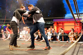 Did you miss the event? Take a look under 'Videos' on our Facebook page. Are you unfamiliar with the whys and wherefores of this tradition of traditional student wrestling? Click here for an explanation in Dutch.