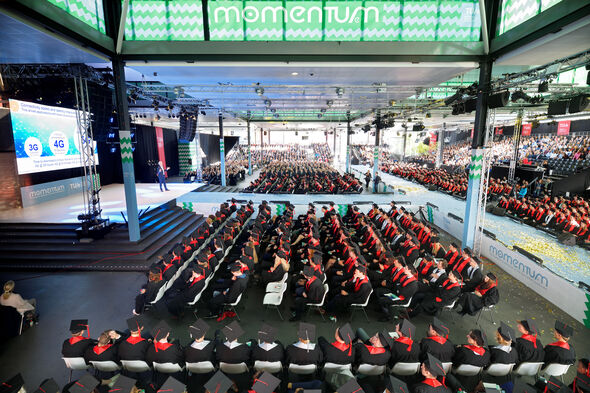 The highlight of the day was the MomenTUm Celebration in the market hall, held from three to five in the afternoon. Here, all the graduating students were again put in the spotlight on the Walk of Fame and addressed by among others Rector Magnificus Frank Baaijens, Executive Board President Jan Mengelers and ASML chief executive Peter Wennink.