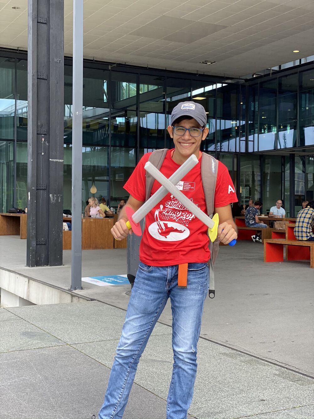 Some gadgets come in handy when you’re keeping to the necessary one meter fifty. So Intro buddies Thijs van de Loo and Martijn Kessels immediately hit on the idea of a sword for their group The Shogun Cream (group 31). “This makes us samurai, ancient super heroes. They admit the swords are big, but luckily they are not heavy.
