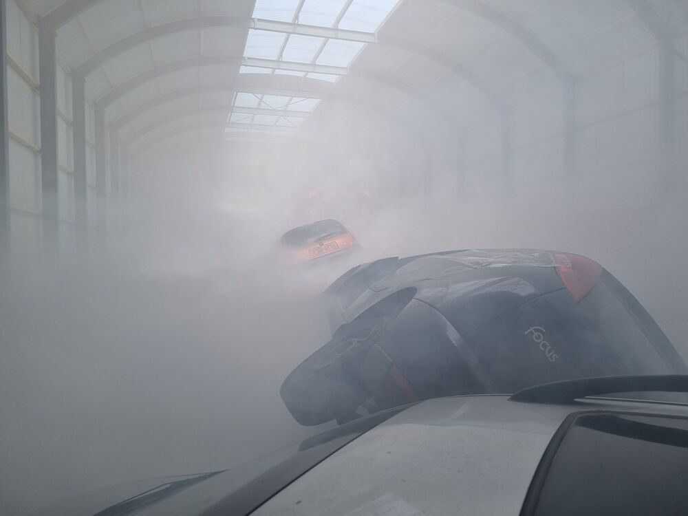 Once the victims have been freed from their plight at the Fenix traffic accident, the team can move on to the hangar at the site of the former dome. In the hanger, a large highway chain collision has been simulated. The room is filled with smoke, and multiple cars are piled atop each other. There are four victims, one of which is our Cursor editor. Wearing heavy-duty masks, the rescuers move through the hangar with utmost focus that would be the envy of an average editor-in-chief. These fire fighters are truly unshakable.
