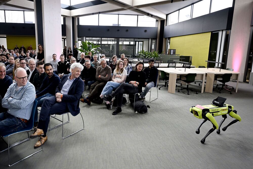 Then the discussion was over, robot dog Spot scurried over to the podium to deliver a punched card to prince Constantijn. The prince entered it in the card reader that started a video, marking the official opening of Neuron.