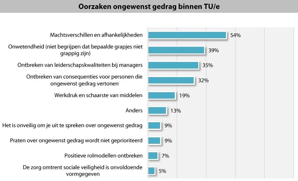 At the Eindhoven School of Education (ESoE), 46 percent of employees reported witnessing undesirable behavior, and 33 percent reported personally experiencing it – making it the department with the highest percentages. Three years ago, Industrial Design (ID) was at the top of the list with 26 percent (now 18 percent).