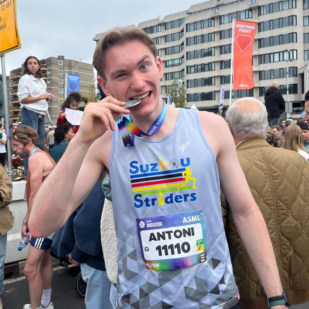 For the second time, Fabian Lucas Luijckx ran a half marathon, but this was his first time doing so in Eindhoven. His goal: under one hour and forty minutes. “That meant maintaining a pace of about 4:45 per kilometer. It was tough—after three kilometers my heart rate was already high. In the end, my time—excluding the extra minutes from the 300 meters through the Philips Stadium for charity—was 1:40:26.”