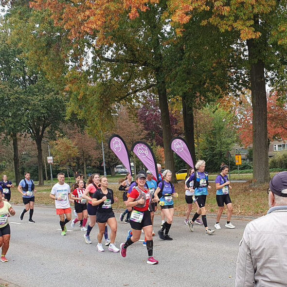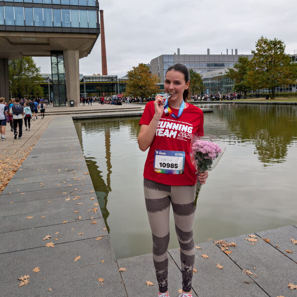 Aalders ran at her own pace, but prepared and celebrated the achievement together with friends who ran the full or half marathon. To cheer her on, her parents, friends, and boyfriend joined her on bikes along parts of the route.