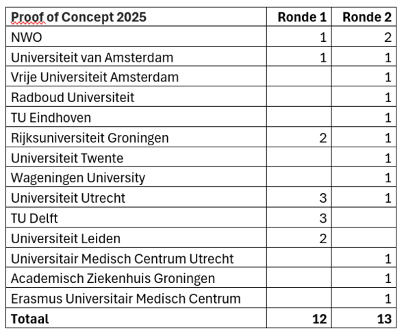 This was the second Proof of Concept grant round of 2025. Last year, a total of 879 proposals were submitted, of which 300 were awarded funding (34 percent). While the number of applications has increased, the success rate has barely declined. This is due to the higher budget: the ERC made 45 million euros available, almost 10 million euros more than in 2024.