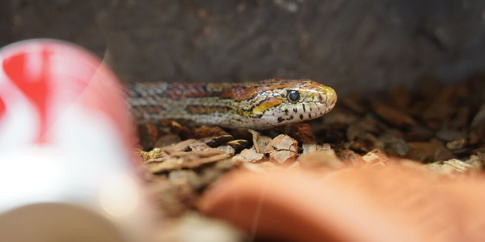 The ‘prothok’ of Protagoras, the study association of Biomedical Technology, is home to Bouzo the snake. He keeps the members of the association company in a terrarium in the corner of a room in Traverse. In return, he receives much love, a clean cage, and a small mouse once a week – if he manages to catch it, that is.