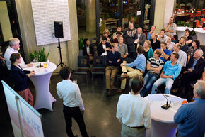 Onder de vijftig man publiek in De Zwarte Doos zijn veel TU/e-studenten op het gebied van robotica, maar ook mensen uit het bedrijfsleven en enkele ‘leken’. Het thema van de avond heeft een actuele lading, nadat minister Lodewijk Asscher van Sociale Zaken een dag eerder waarschuwde voor het verdwijnen van banen als gevolg van de inzet van robots.