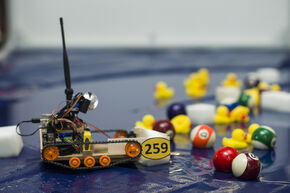 De reddingsrobots gebouwd door tweedejaars TU/e-studenten hebben niet alle sponzen, badeenden en biljartballen kunnen redden die voor slachtoffer speelden tijdens de grote slotoefening van het vak Engineering Design. Ruim tweehonderdvijftig robots moesten zaterdag in 'rampgebied' Gemini opdrachten uitvoeren die op afstand, door de stuurgroepen in het Auditorium, werden gegeven. Wifi bleek de grootste vijand.