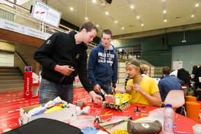 "Onze wifi-ervaringen zijn tot nu toe heel negatief", zegt Max van Hattum (Biomedische Technologie) van groepje 009 met de naam 'Rolmops'. De wagen is helemaal grijs, omdat het budget van zeventig euro niet meer verfkleuren toeliet. "Het meeste geld ging op aan verzendkosten."