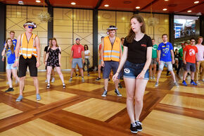 De Japanse cultuur is te vinden op de tweede verdieping van het Auditorium. Een ‘acquired taste’ die niet voor iedere aankomende student is weggelegd. Terwijl de enthousiastelingen van groepje Onesie One Love (niet op de foto) – blikje bier in de hand - gezamenlijk karaokesk meebrullen op het nummer All Star, keren verkenners van andere groepjes schielijk om en maken zich uit de voeten. En dat terwijl de japanofielen van Kinjin, op dit moment zestig leden groot, nog wel water bij de wijn hebben gedaan: vorig jaar was het nog verplicht om eerst een Japans nummer mee te zingen, voordat de introgangers zelf een anderstalig nummer mochten kiezen. Ook te beleven bij Kinjin: Dance Dance Revolution, mangatekenen en een cursus Japans.