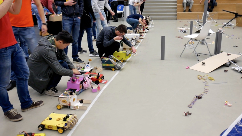 Zestienhonderd tweedejaars bachelorstudenten sloten zaterdag traditiegetrouw op vrolijk-hysterische wijze het vak Engineering Design af. Hiervoor hadden ze zich in de voorafgaande weken in groepjes gestort op het ontwerpen, bouwen en testen van reddingsrobots die, op afstand bestuurd, zogenaamde slachtoffers liefst op humane wijze moesten zien veilig te stellen.