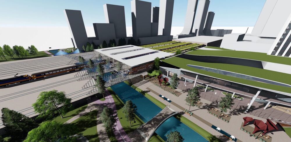 Station Eindhoven moet een internationaal knooppunt gaan worden en de plannen daarvoor beginnen steeds meer vorm te krijgen. Aan de noordkant van het station moeten tienduizend woningen komen en door vergroening van dat gebied, met name rondom de Dommel, krijgt de campus van de TU/e straks een directe verbinding met het station.