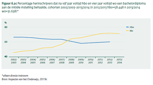 De laatste jaren kiezen steeds meer internationals voor een studie aan een Nederlandse hogeschool of universiteit. En met succes, schrijft de Onderwijsinspectie in haar jaarlijkse rapport De Staat van het Onderwijs. Ze behalen vaker en sneller een diploma dan de Nederlandse studenten, zowel in de hbo- als in de wo-bacheloropleidingen. Al ruim vijf jaar is het verschil in studiesucces tussen internationals en Nederlanders ruim tien procentpunt.