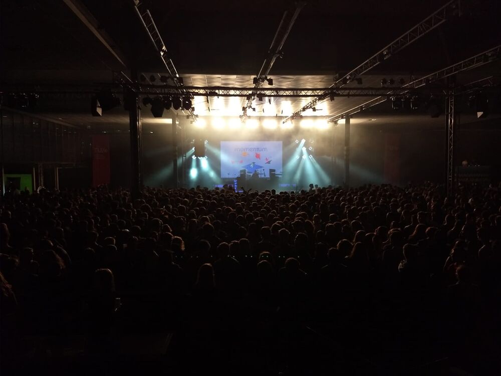 21.28 uur | Onherkenbaar. De markthal van MetaForum, waar vanmiddag nog bijna dertienhonderd afstudeerders en honderden andere gasten genoten van de sjieke MomenTUm-ceremonie, is inmiddels omgetoverd tot een tijdelijke concertzaal. En het is er al gezellig druk.
