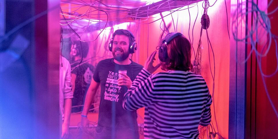 Alle decorstukken zijn gemaakt door Lucid-leden en -vrienden. “Je komt binnen door een gate ‘welcome on board’ en kunt -als je wilt- een passende outfit in elkaar zetten met aluminiumfolie en stoffen. Je loopt langs het lichtkunstwerk Hypar Collective dat een grote rol in het verhaal speelt”, zegt Nieuwenhoff. “Conduct is niet een standaard festivalervaring, we gebruiken een verhaallijn voor een samenhangend geheel.”