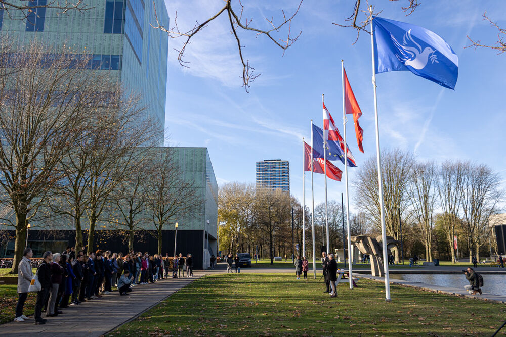 “Met deze vlag betuigen we onze solidariteit met iedereen die getroffen is door oorlog, onderdrukking of geweld”, zegt Janssen. “Zowel hen die in het buitenland onvoorstelbare omstandigheden doorstaan, als degenen binnen onze eigen gemeenschap die hierdoor zwaar getroffen zijn.”