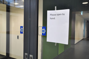 Op verschillende plekken wordt -nog geen week later- al met post-its en printjes verduidelijking aangebracht. Dat de spelling nu consequent in het Engels zou moeten zijn, is een vooruitgang te noemen, maar dat de Engelse teksten vol domme fouten als het niet-bestaande woord mainbuilding zitten, is lelijk en beschamend.